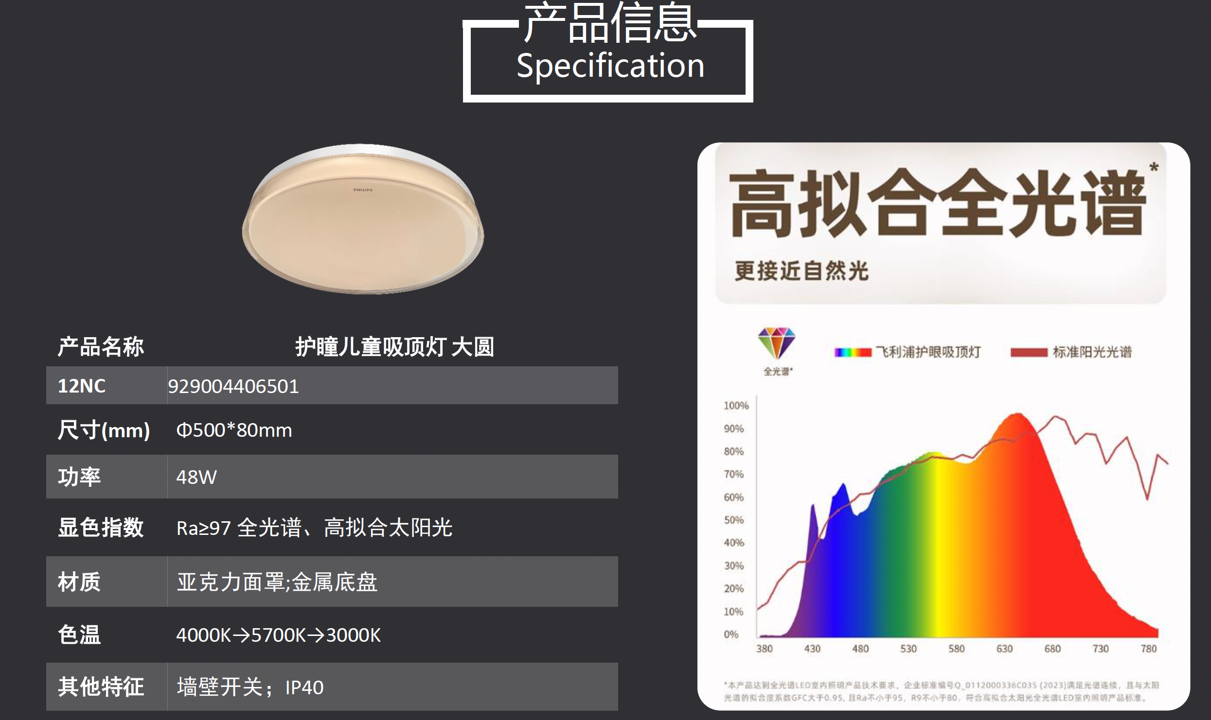 •CRI97 高拟合全光谱呵护孩子双眼