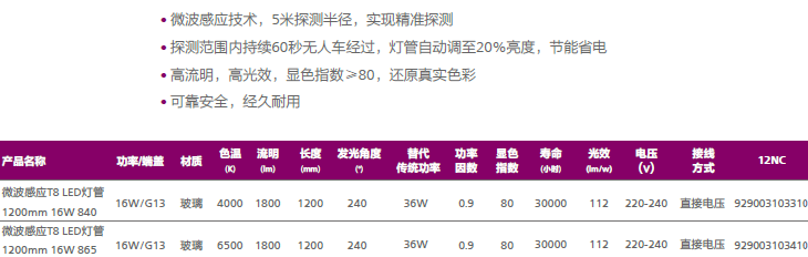 微波感应T8 LED灯管