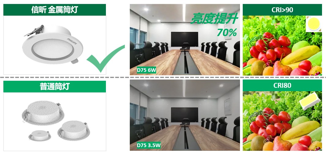 2.明亮高显色 – D75 瓦数提升 70% (3.5W->6W) CRI90