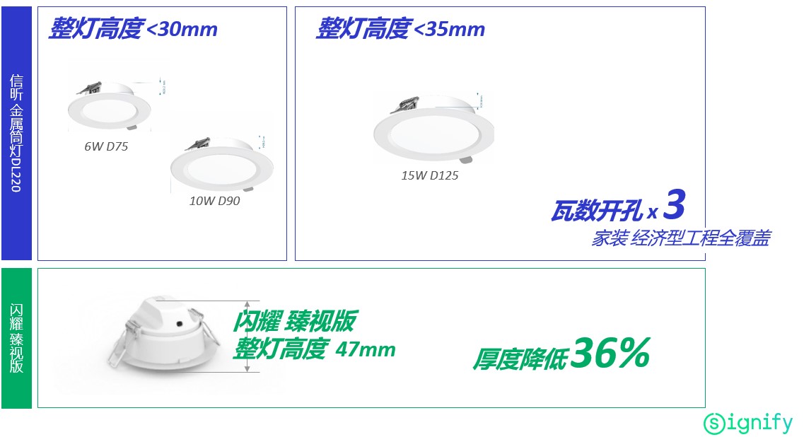 3.超薄灯体 – 灯体高度范围 30mm-35mm 降低36% (vs 闪耀 臻视版)