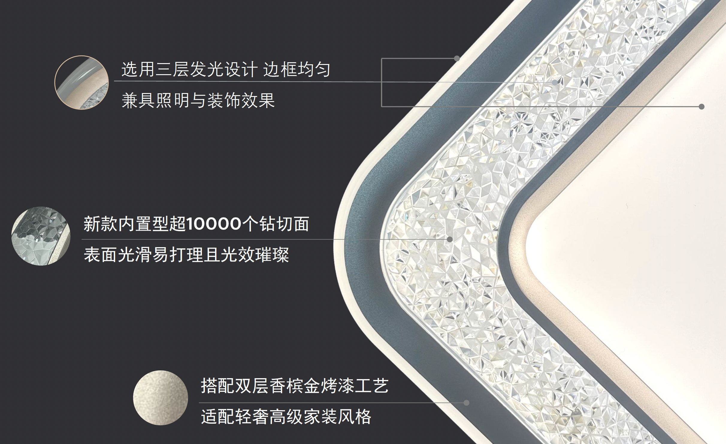 •新款内置型钻切工艺表面光滑而璀璨